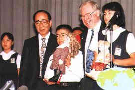 | Presentation of the doll, "Betsey Hollywood", as a symbol of goodwill, from Hollywood Elementary School to Matsusaki Elementary school. |