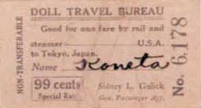 Koneta's steamship ticket from