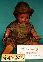Grace is the name of this doll that is labeled as "MADAME HENDREN DOLL 216" made by GENUINE Company. The school principal at that time asked one of the female teachers to keep the doll safe because "he could not burn such a cute doll." It is said that the teacher discussed the situation with her mother-in-law and hid the doll in a storeroom. She reported to the children that she had burned the doll. In 1977, the doll was returned to the school by this teacher after spending many years inside the storeroom. Her clothes and other things were all just like they had been before. It is said that 194 dolls arrived in Mie Prefecture out of the 12,739 "Friendship Dolls" that were sent based on the appeal of American Dr. Sidney Lewis Gulick in 1927. However, in the prefecture there are now 9 dolls that have been kept by the goodwill of the people of those days. |